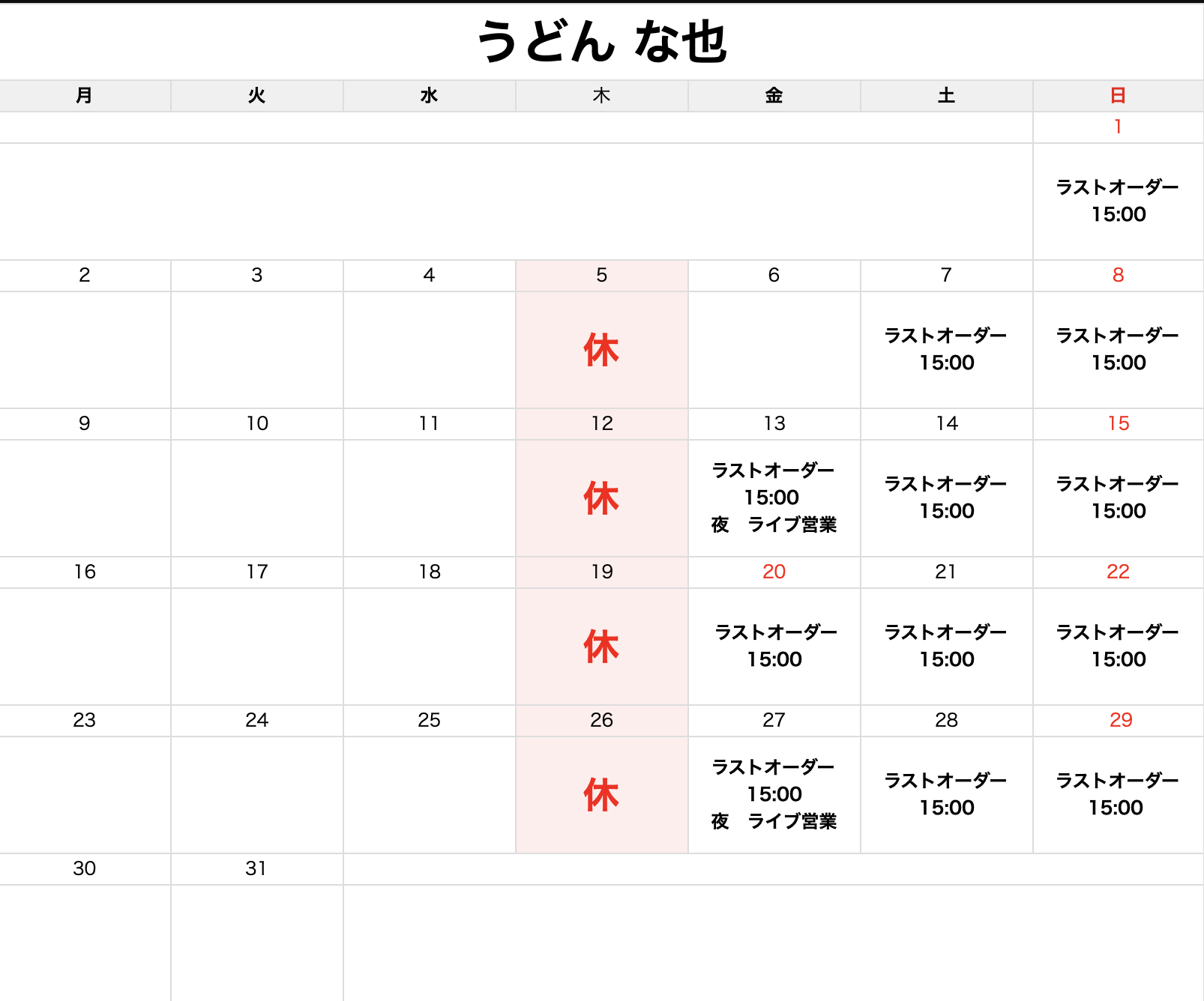 定休日 毎週 木曜日