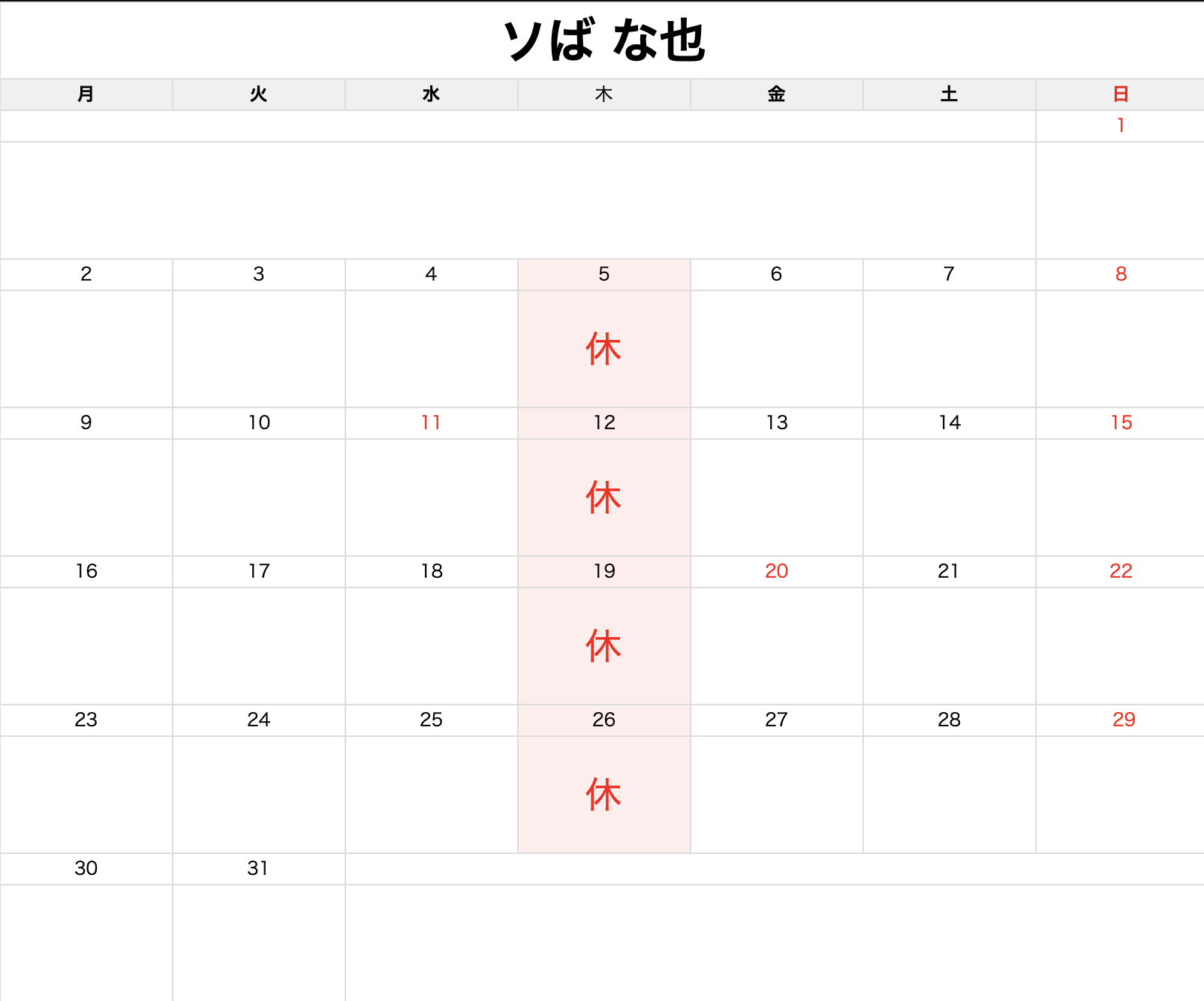 定休日 毎週木曜日
